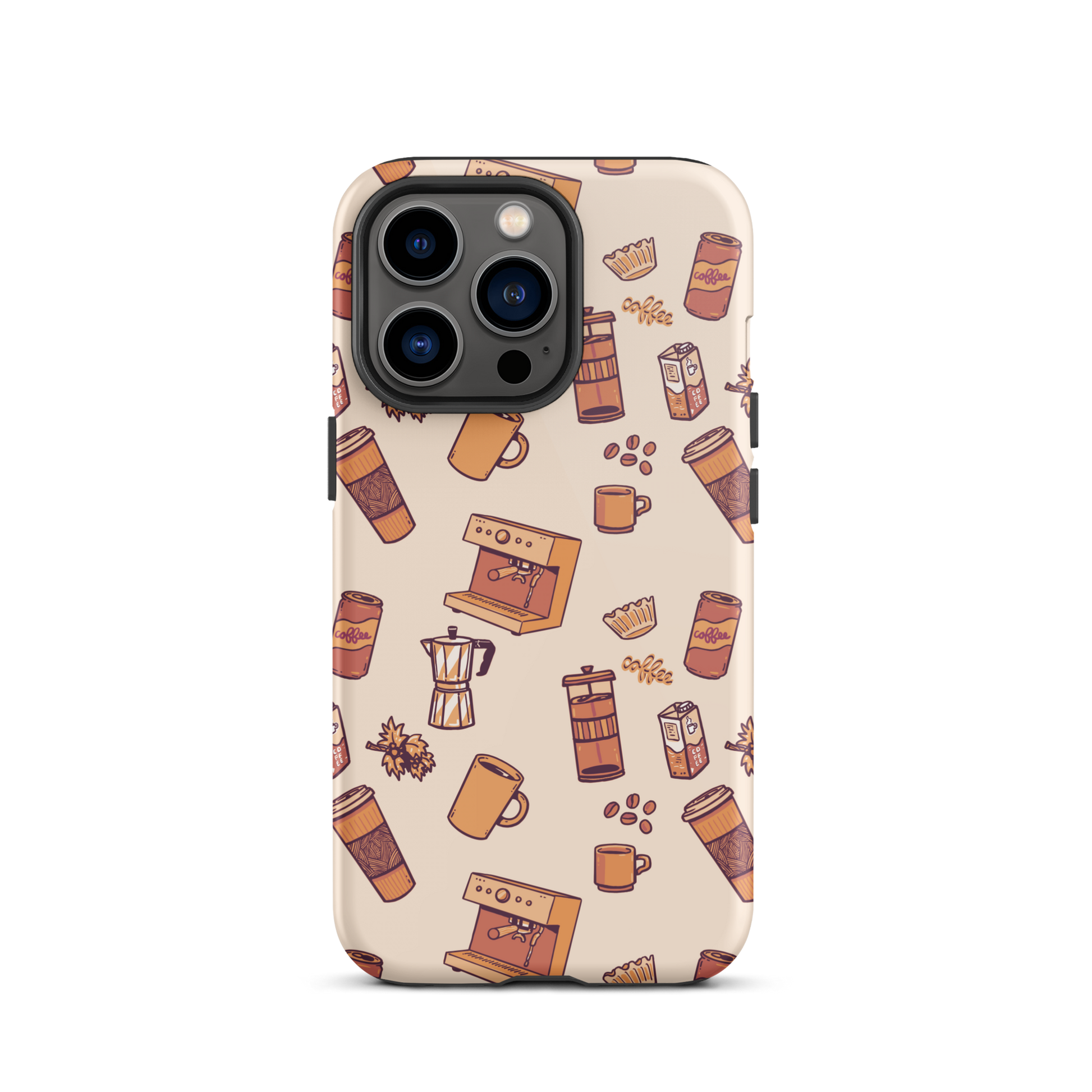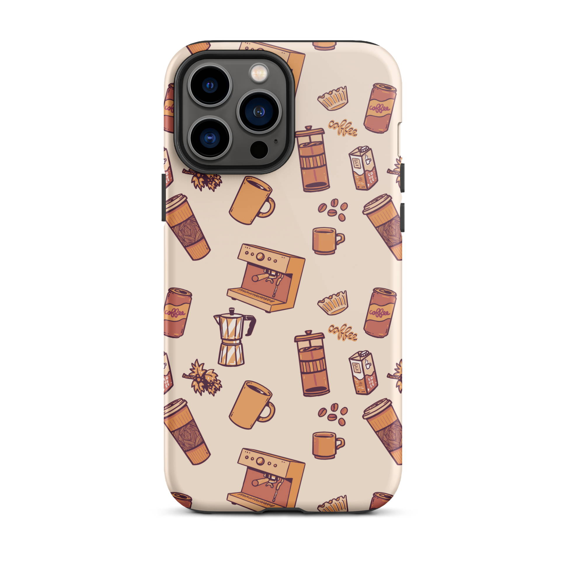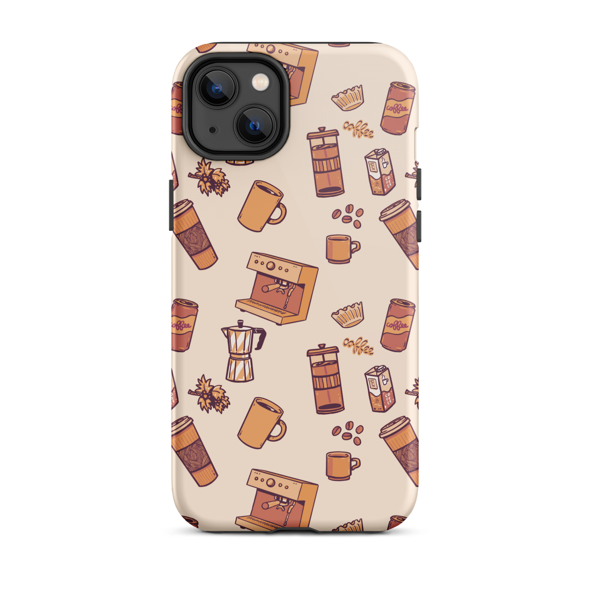 This pattern design is filled to the brim with coffee with nods to some of the most popular ways to enjoy it. Whether you prefer pour-over, french press, espresso, canned, or box coffee you'll find something to appreciate in this hand-illustrated phone case design.