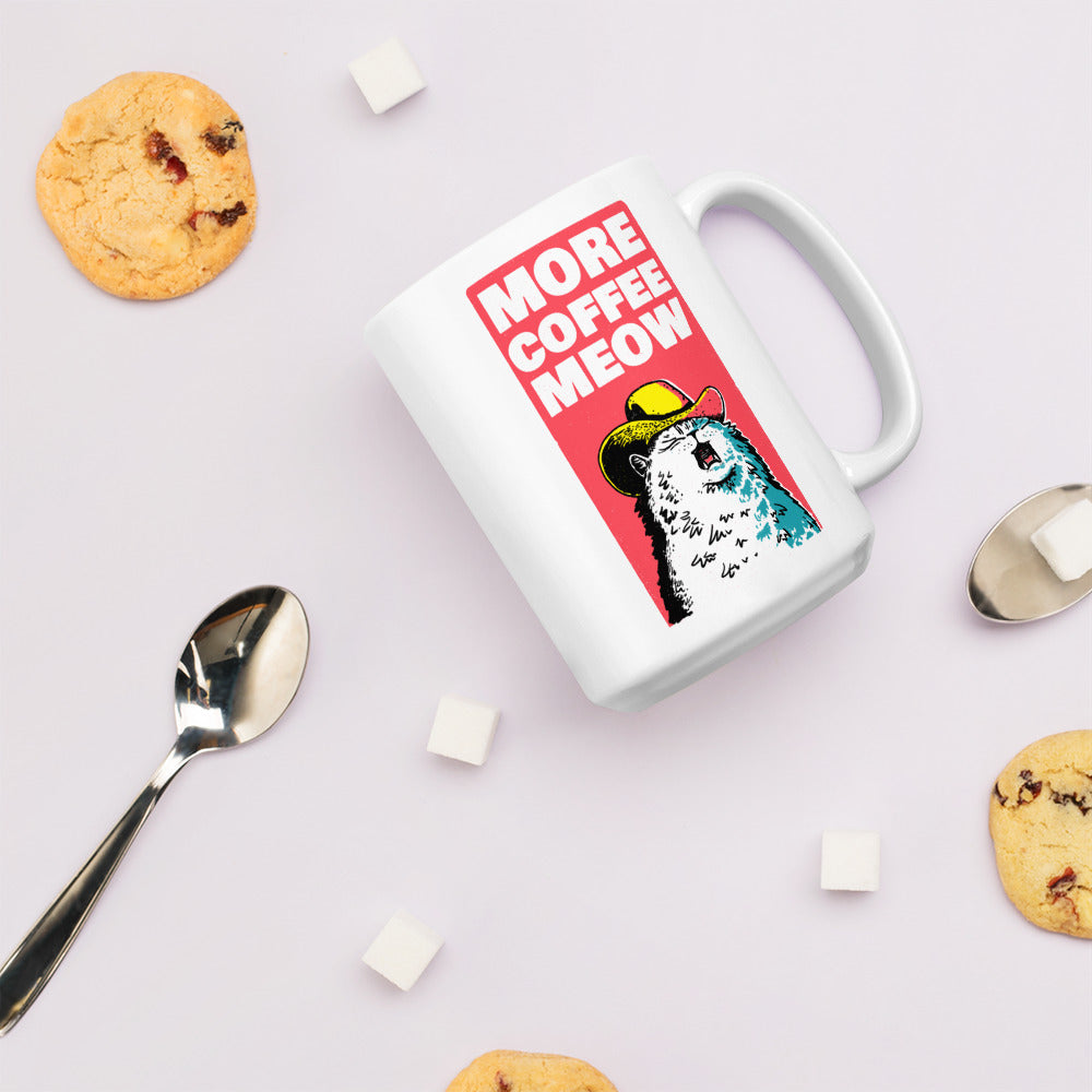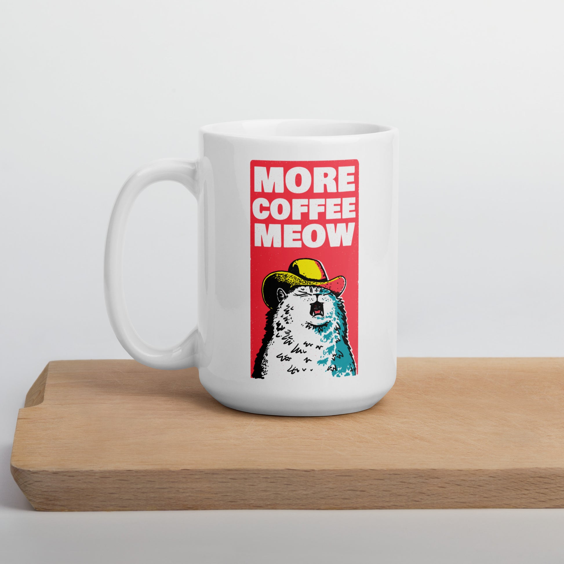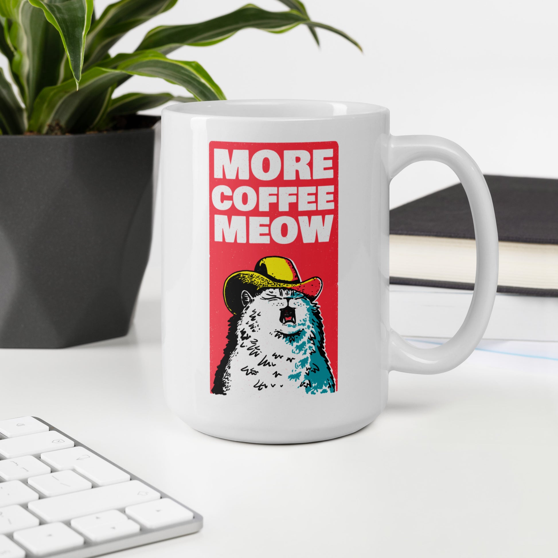 More Coffee Meow - Funny Cat White Glossy Mug - 15oz